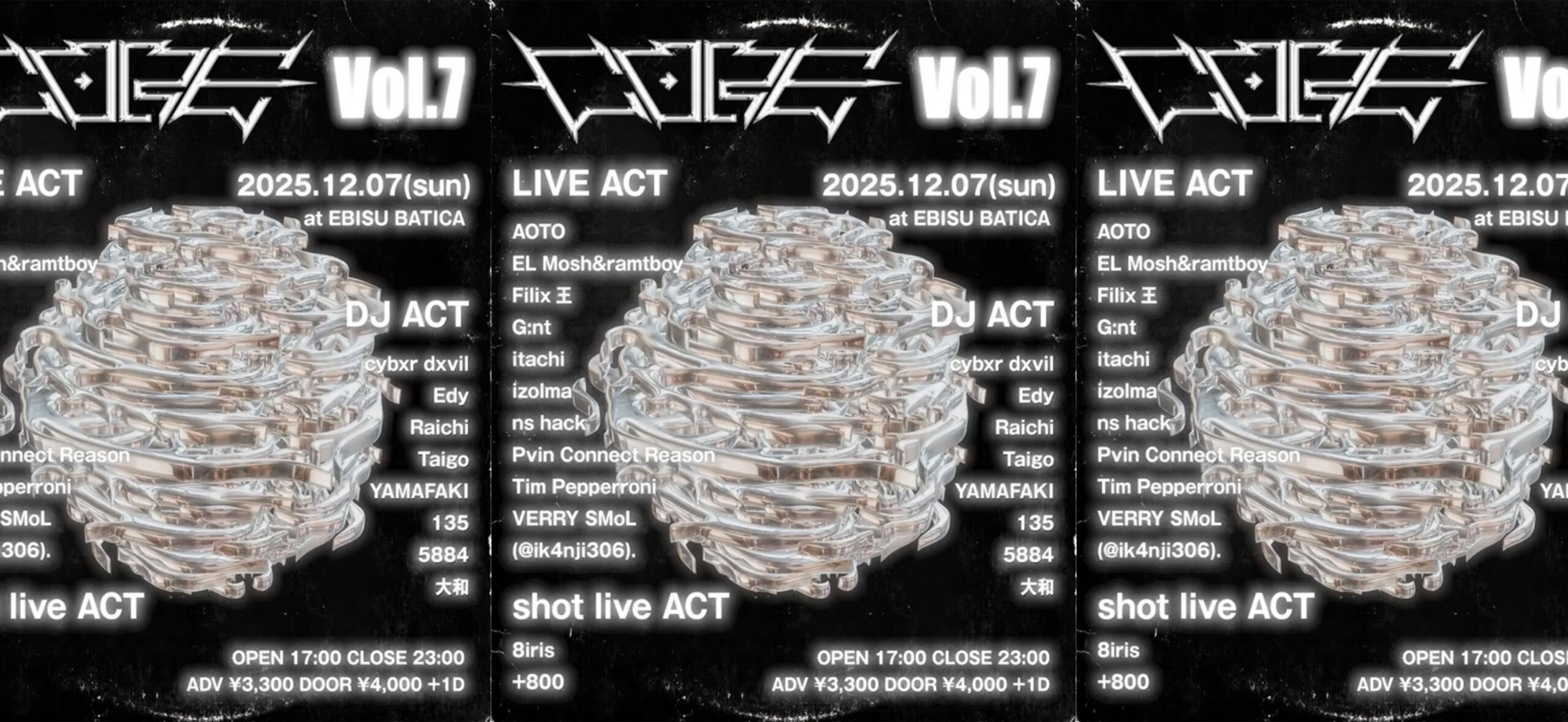 ADV ¥3,000/DOOR ¥3,500 ※1ドリンク代別