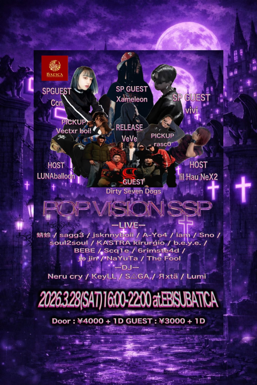 ADV ¥3,000 / DOOR ¥4,000 ※1ドリンク代別