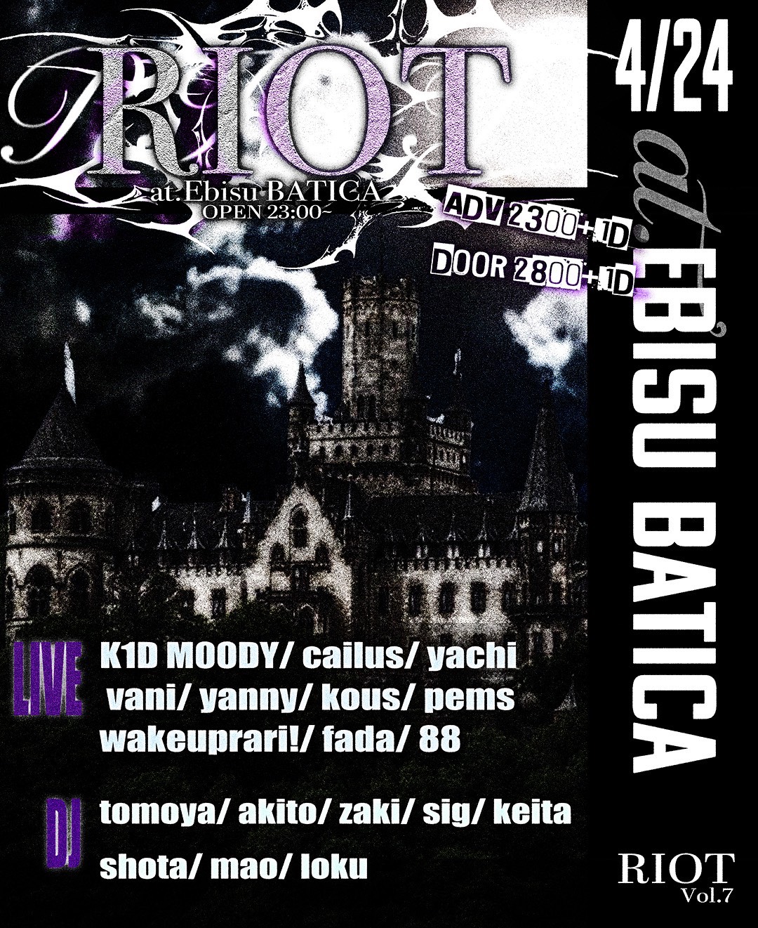 DOOR ¥2,300 / ADV ¥1,800 ※1ドリンク代別