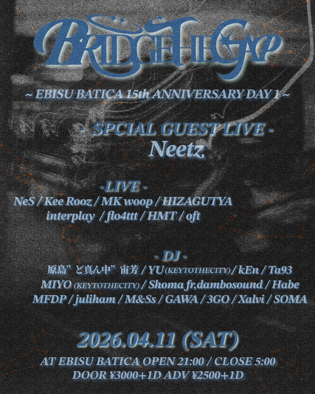EBISU BATICA 15th ANNIVERSARY DAY1 “BRIDGETHEGAP”