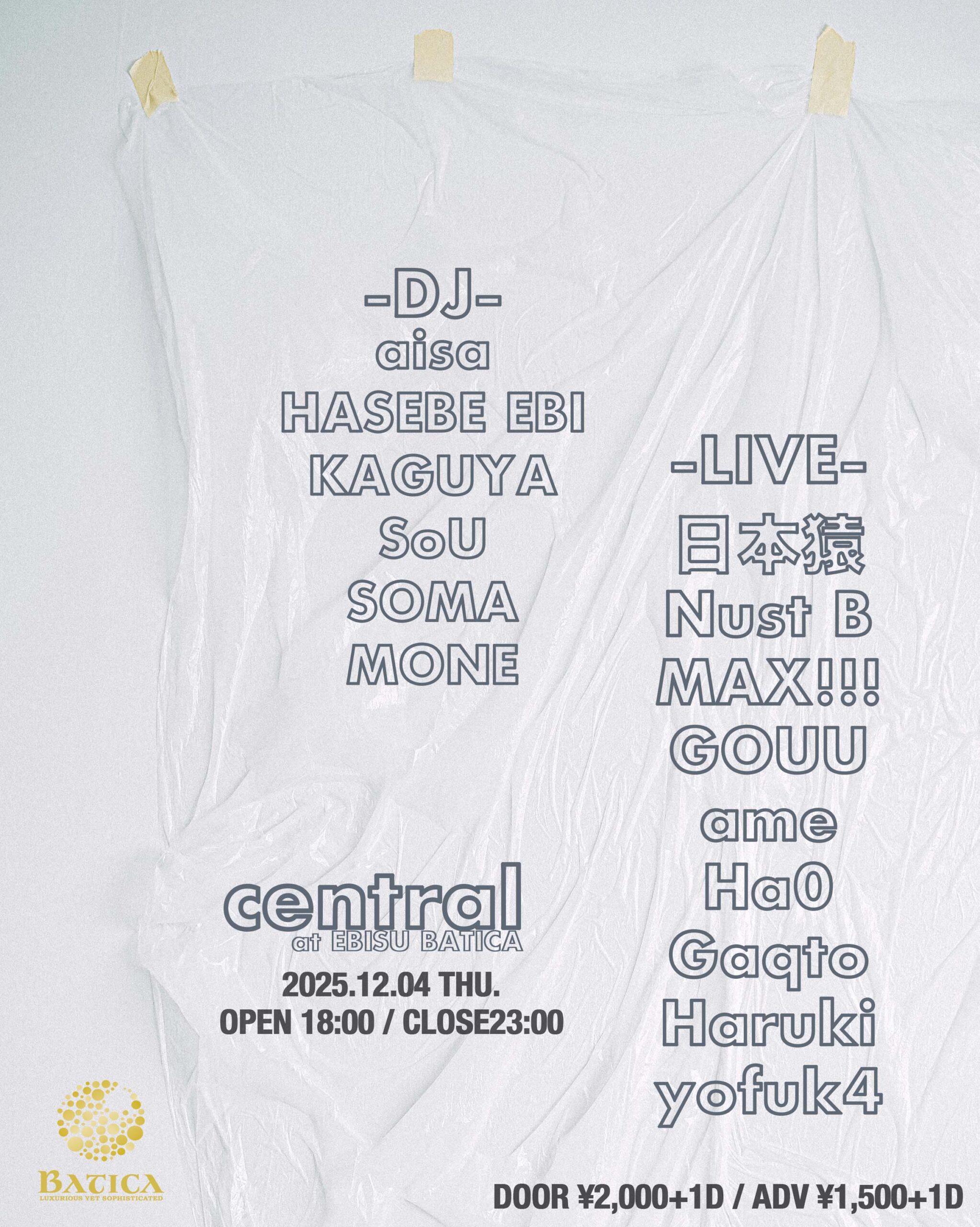 DOOR ¥2000 / ADV ¥1500 ※1ドリンク代別