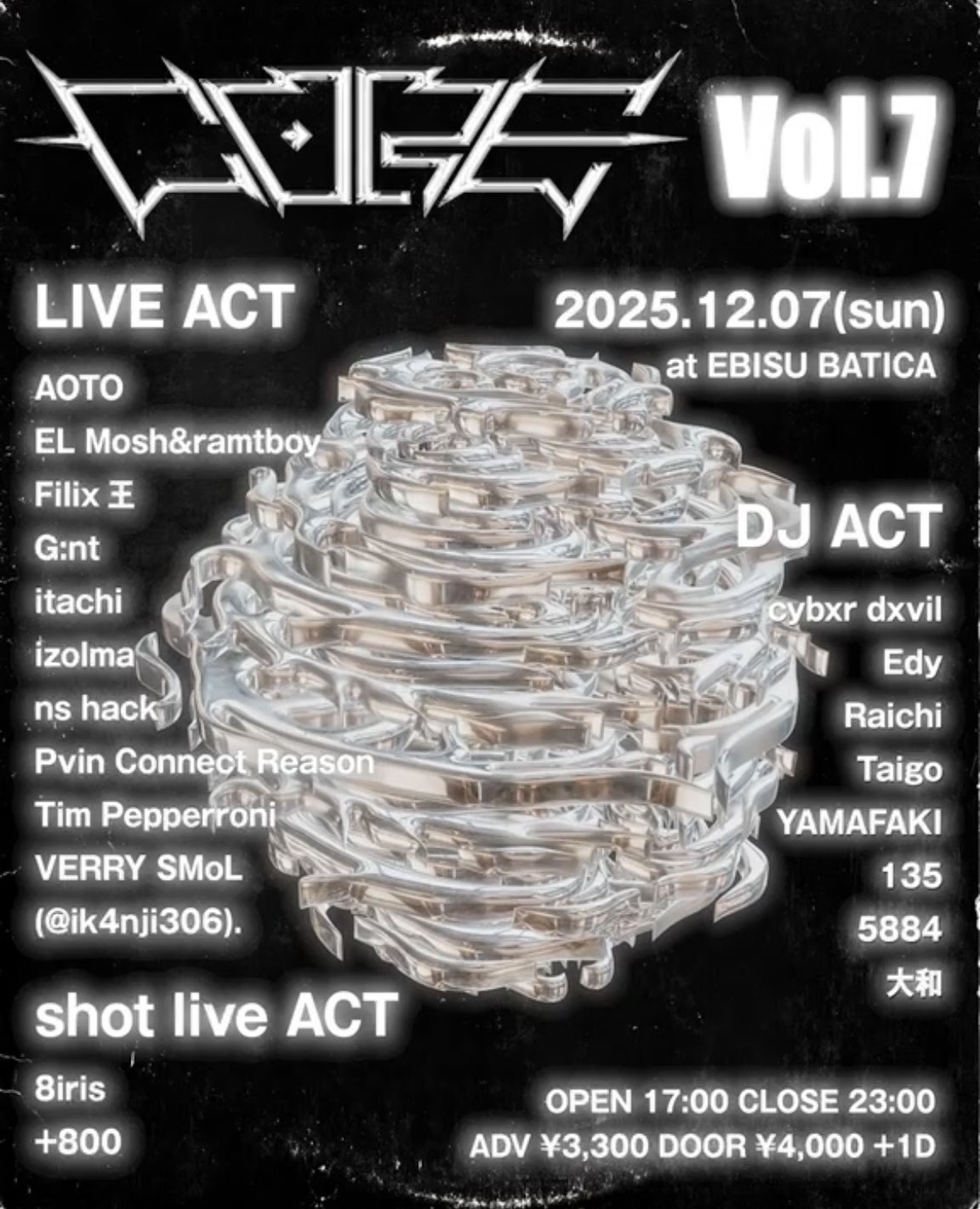 DOOR ¥4,000 / ADV ¥3,300 ※1ドリンク代別