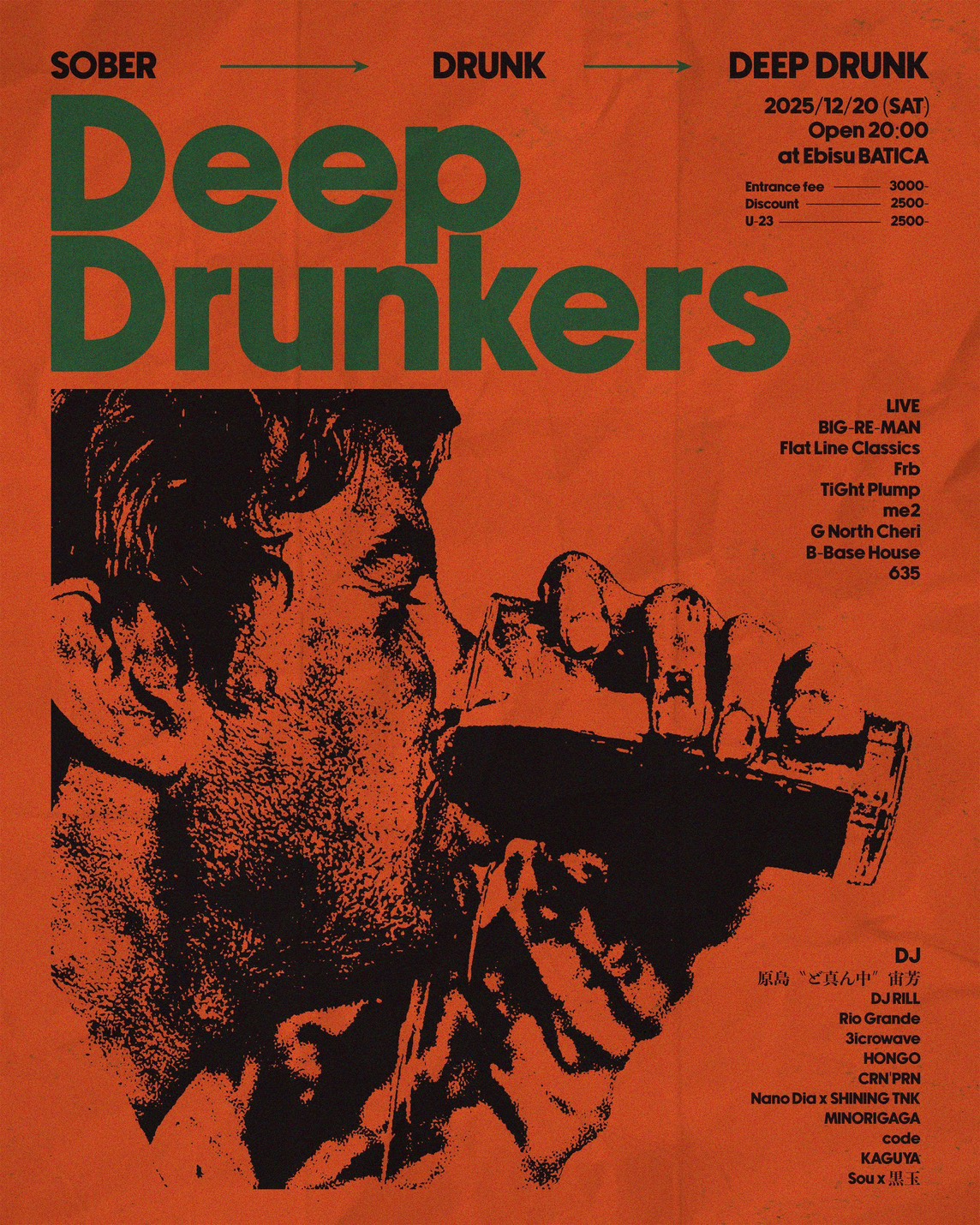 DISCOUNT ¥2,500 / U-23 ¥2,500 / DOOR ¥3,000 ※1ドリンク代別