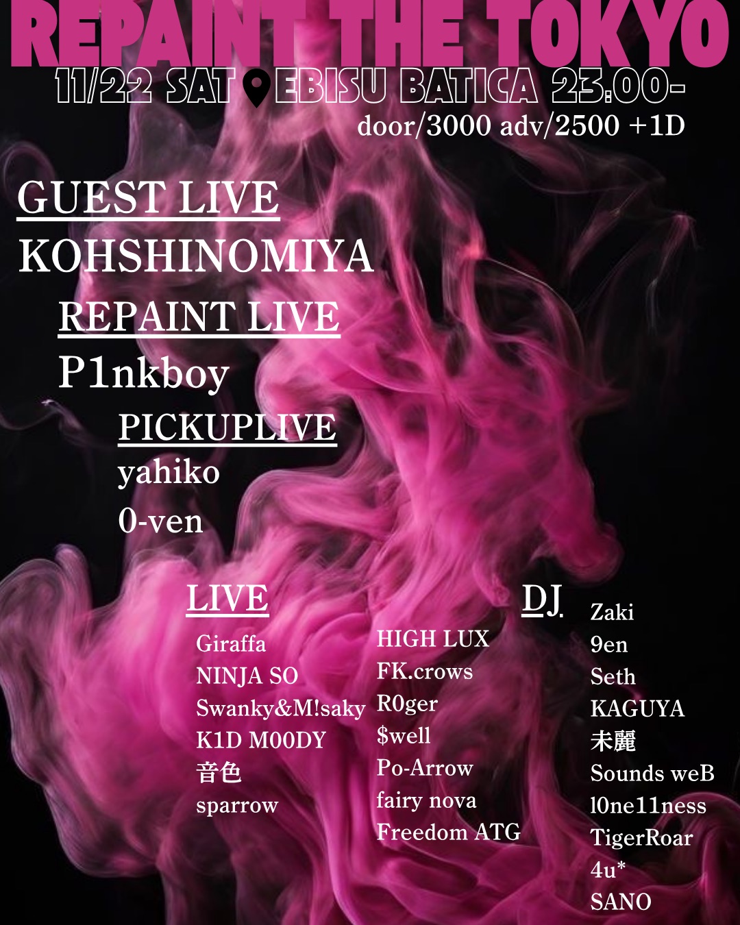DOOR ¥3,000 / ADV ¥2,500 ※1ドリンク代別
