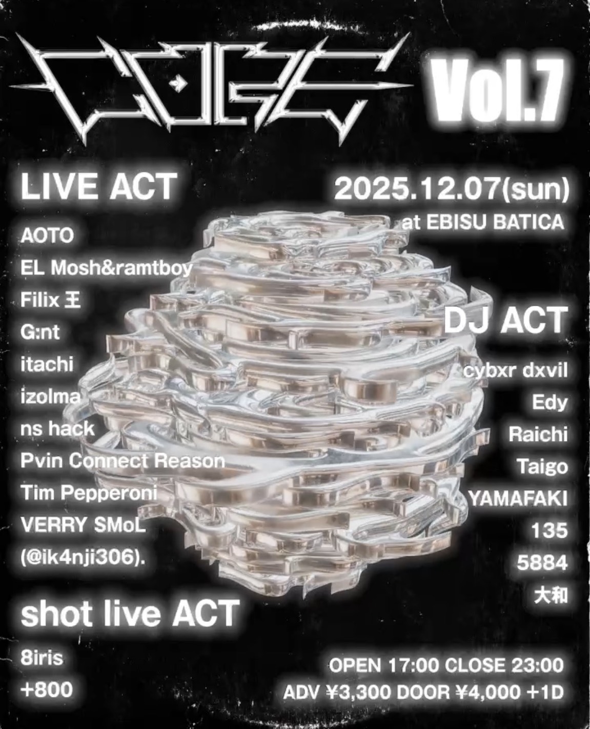 DOOR ¥4,000 / ADV ¥3,300 ※1ドリンク代別