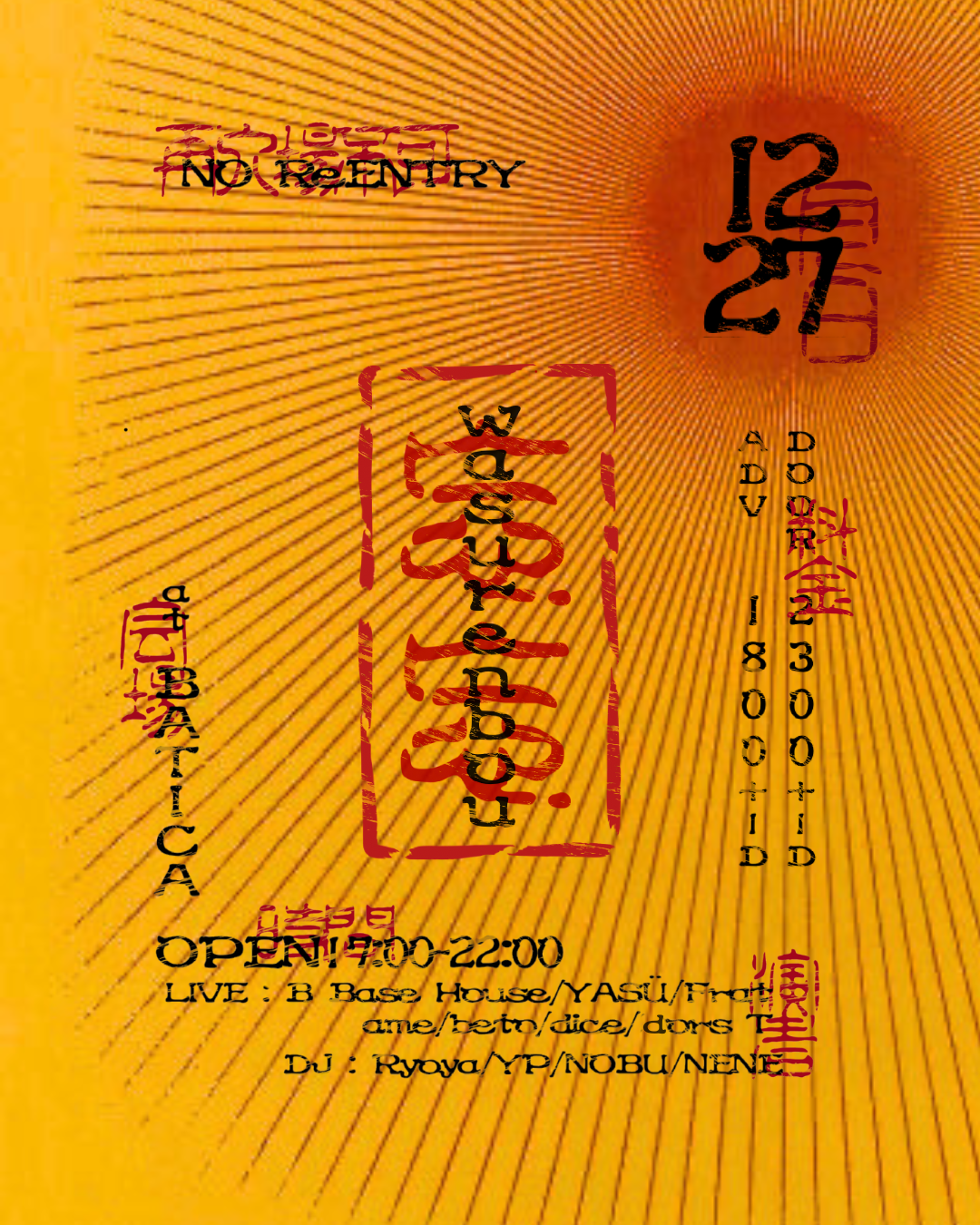 ADV ¥1,800/DOOR ¥2,300 ※1ドリンク代別